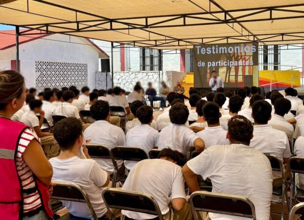 El conferencista Joaquín Oloño, junto con otros expositores, compartió con la población interna testimonios reales mediante los cuales buscan impactar y visibilizar las serias consecuencias del consumo de drogas.