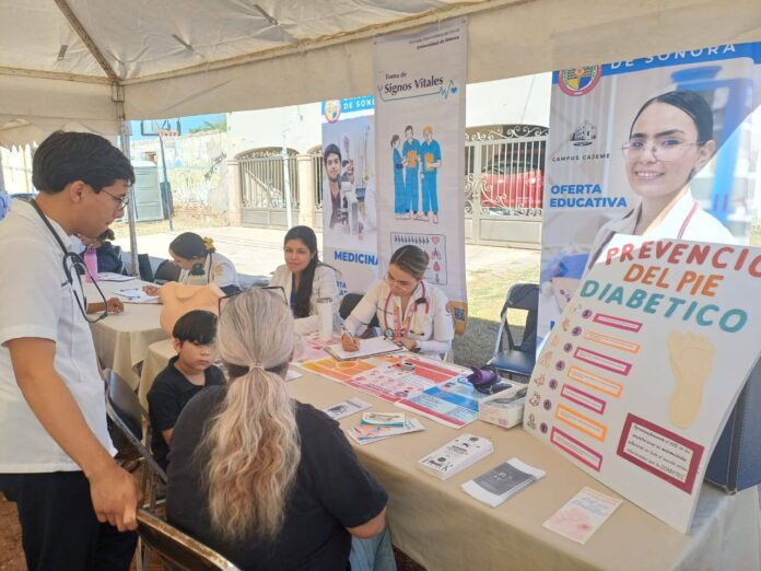 Agregó que en coordinación con la UNISON Campus Cajeme, de 9:00 a 14:00 horas se atendieron los requerimientos ciudadanos y se brindaron servicios de salud, tales como taller de primeros auxilios, higiene en niñas y niños, revisión dental y salud bucal, desparasitación, taller de cuidados animal, educación nutricional, tipo sanguíneo y medición de glucosa, así como atención médica gratuita, toma de presión arterial, consulta médica primaria, prevención de cáncer de mama, dotación de medicamentos, entre otras acciones.
