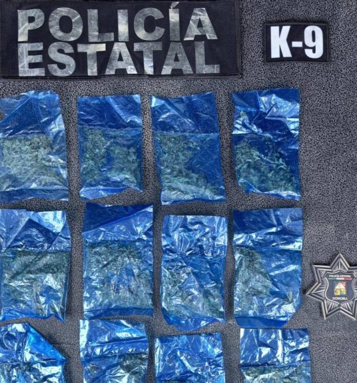 Como resultado de la inspección, el grupo operativo de la Policía Estatal aseguró un total de 12 envoltorios con hierba verde, motivo por el cual la persona fue informada sobre sus derechos y puesta a disposición del Ministerio Público correspondiente.
