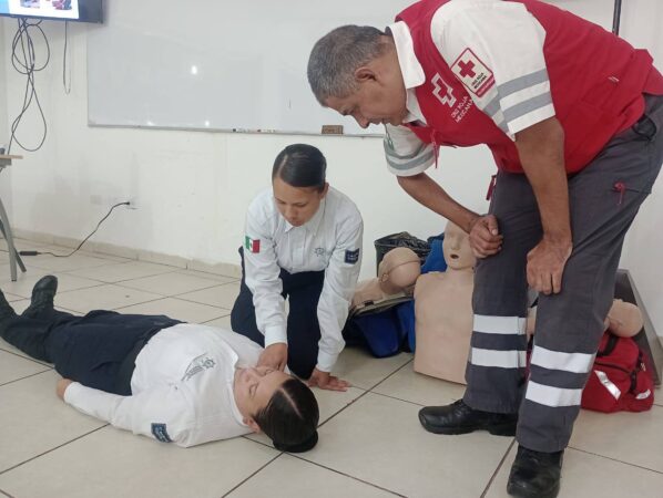Personal de la Cruz Roja Delegación Cajeme impartió un curso de primeros auxilios a las y los cadetes de la Academia de Policía Municipal, con el objetivo de dotarlos de conocimientos básicos para actuar de manera oportuna ante emergencias médicas.