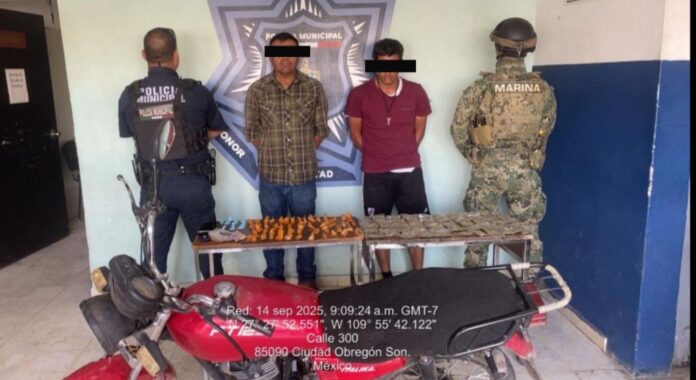 Elementos de la Secretaría de Seguridad Pública Municipal (SSPM), en coordinación con personal de la Secretaría de Marina Armada de México, realizaron la detención de dos personas del sexo masculino por su presunta participación en delitos contra la salud, durante un operativo de vigilancia y prevención del delito en la colonia El Campanario.