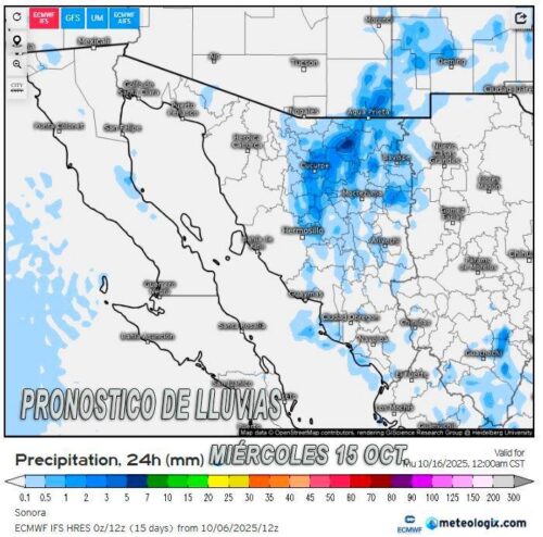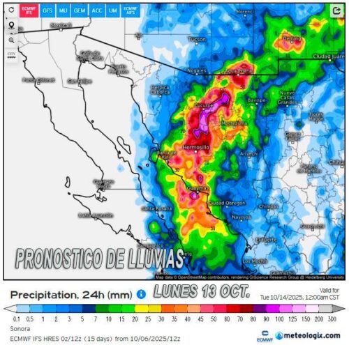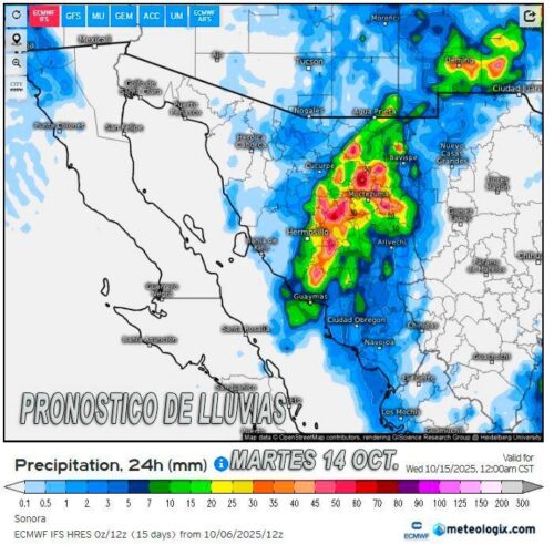 El titular de Protección Civil Municipal, Francisco Mendoza Calderón, explicó que, aunque el fenómeno se mantiene alejado de las costas de Sonora, sus efectos indirectos podrían provocar chubascos aislados y encharcamientos, principalmente durante la segunda mitad de la semana.