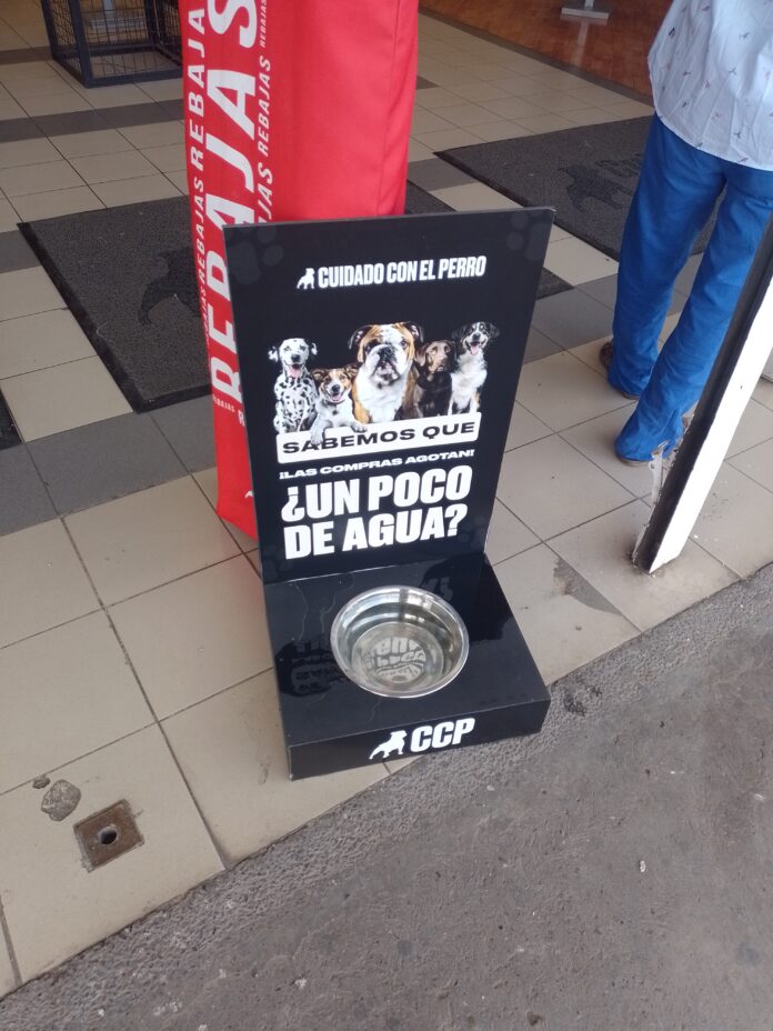 Cajeme,Son-.Se captó a las afueras de una tienda departamental de ropa denominada “cuidado con el perro” ubicada en la calle Miguel Alemán y Galeana de ciudad Obregón, un traste con agua donde con un diseño alusivo a los perros indica que pueden beber agua los caninos de la calle.