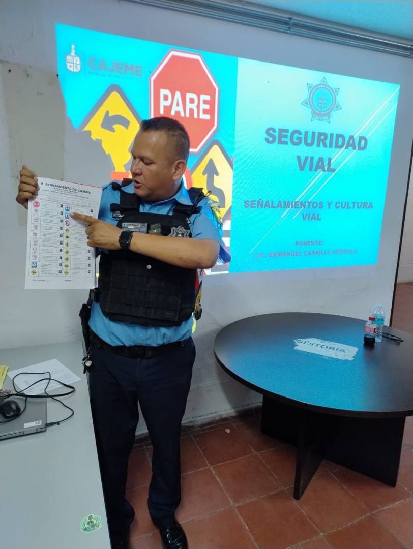 La capacitación estuvo a cargo del Policía Emmanuel Carrillo Arreola y Jorge Clavería, instructores del Departamento de Tránsito, quienes compartieron herramientas prácticas para una conducción más segura.